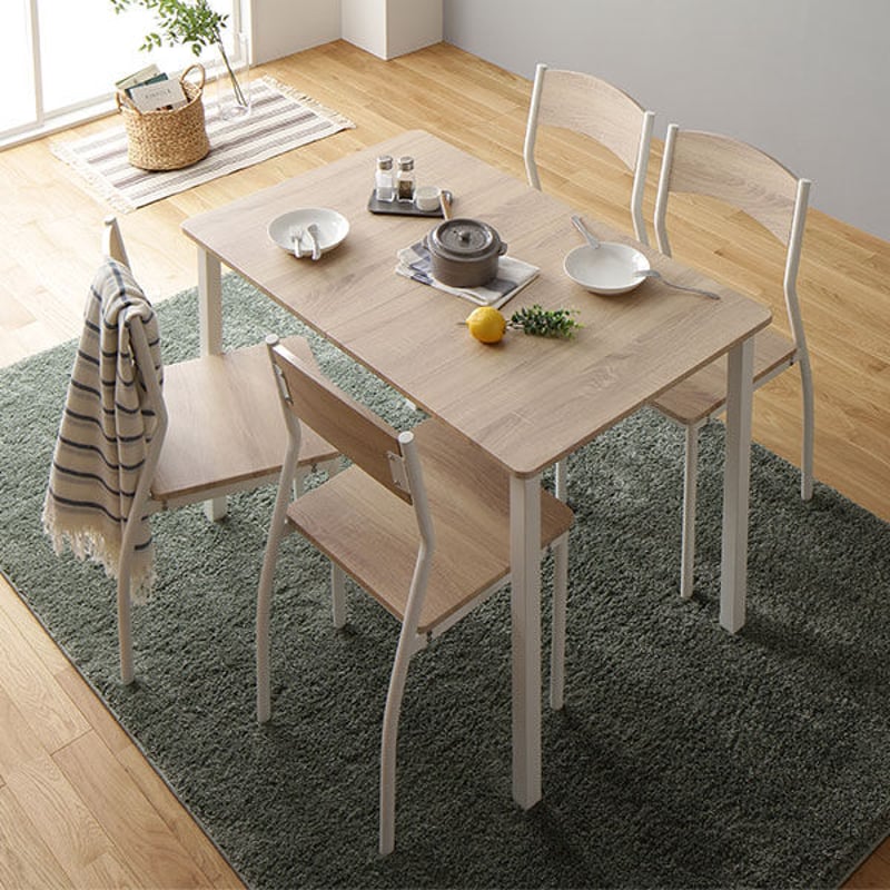 - 机・テーブル > ダイニングテーブル > 【新品】【コンパクト】4人掛けダイニングセット 5点セット スチール脚 幅110 ダイニング セット 5点 テーブル 110cm チェア 4脚 ナチュラル