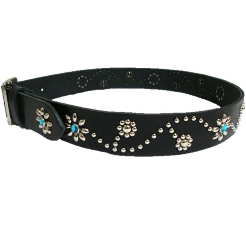 | メーカー名 | de615dc | ブランド名 | 栃木レザーベルト フラワー型スタッズベルト 黒(アクアブルースポッツ)一枚革 栃木レザー |