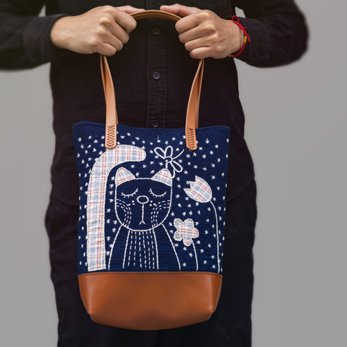 | メーカー | (手づくり)\"好きな夜空に\"アップリケ刺繍絵のトートバッグねこロンドン |