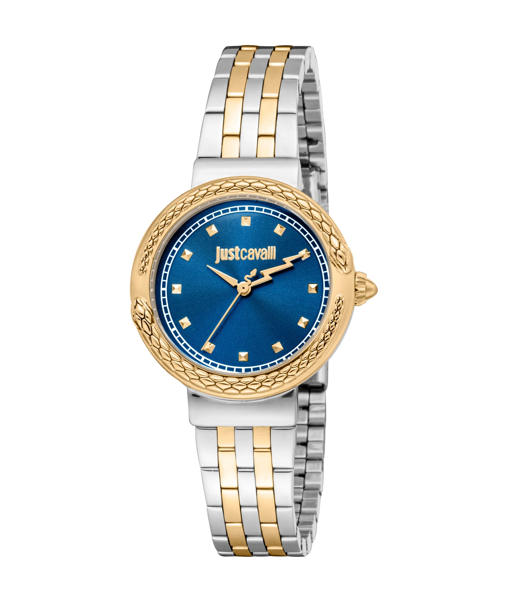 新品、未使用品 JustCavalli 腕時計 スネーク コンビ Just Cavalli SET Brave Snake Two Tones YG Blue Watch JC1L311M0065