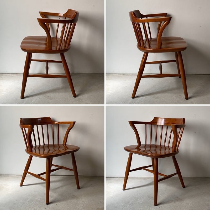 - 椅子・チェア > ダイニングチェア > 飛騨産業 キツツキ ダイニングチェアーB イス 椅子 木製 再塗装済 USED B 飛騨産業 キツツキマーク ウィンザーダイニングチェア ローバック
