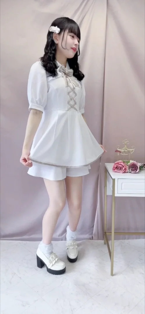 | メーカー | ゆったりめ/フリル襟のワンピース/ピンパーネル/フロントリボン/モカ |