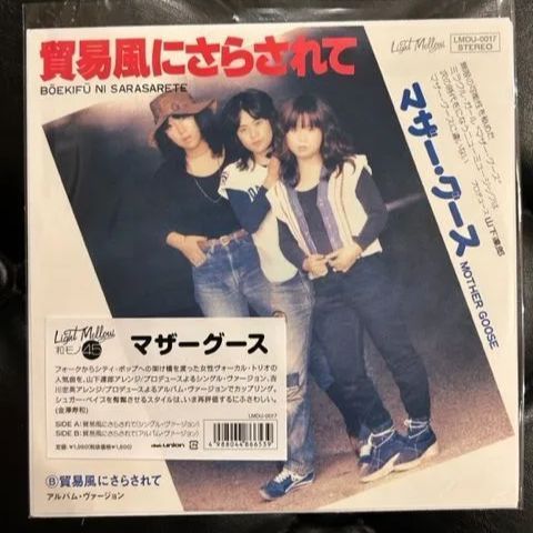 | 商品の特徴 | 貿易風にさらされて / マザー・グース 山下達郎 7インチ レコード。maxresdefault.jpg?sqp=-。貿易風にさらされて / マザー・グース - YouTube。貿易風にさらされて / マザー・グース 山下達郎 7インチ レコードアナログ盤限定再発盤「LIGHT MELLOW 和モノ SPECIAL」、吉沢dynamite.jp監修「和モノ A TO Z」掲載。3人組女性グループ「マザー・グース」のシングル・オンリー・ヴァージョン曲!両面山下達郎がアレンジ&初プロデュースを手掛けたシュガー・ベイブらしさが魅力のレア・シングル!演奏は山下達郎の他、坂本龍一、ティンパン勢の林立夫、細野晴臣、鈴木茂、浜口茂外也と超豪華面子が担当!元々1STアルバム\"INDIAN SUMMER\"に収録、グルーヴィーな演奏とシュガー・ベイブ直系のコーラス・ワークがハマッた瑞々しいまでのCITY POP隠れた名曲\"貿易風にさらされて\"、そして'77にリリースした彼女たちに入れ込んだ松任谷由実が印象深いジャケット・イラストと推薦文をコメントした2NDにしてラスト・アルバム\"パノラマ・ハウス PANORAMA HOUSE\"収録、フォーキーなオリジナルの雰囲気を残しつつもメロウな演出を施したアレンジも見事な\"マリンブルー\"も最高!。7fcdfc7277329fa3c23865df75f2c2 | ||