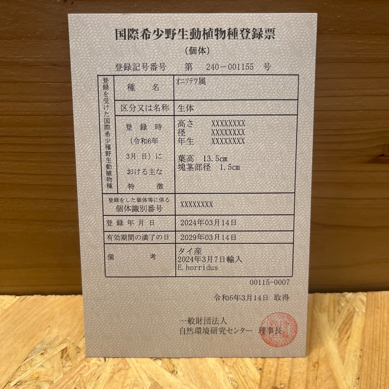 | メーカー | ホリダス エンセファラルトス 登録票 付属 エンセファラルトス |