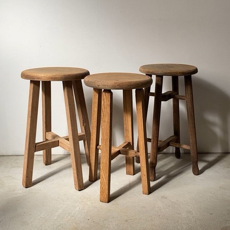| 商品の特徴 | アンティーク 木製無垢 丸椅子 ブナ材 角脚 無塗装 古い木製スツール。アンティーク 木製無垢 丸椅子 ブナ材 角脚 無塗装 古い木製スツール。アンティーク スツール 木製丸椅子 広葉樹座面 木肌・木目・艶感良好。軽い色味と裾広がりの脚とが可愛らしい印象のスツール緩みのある箇所は一度バラし、圧着・補強し直しておりますので安定感のある仕上がり気兼ねなく日常使いしていただけます。ヴィンテージ 木製座椅子 丸イス いす スツール | アンティーク家具と。サイズはW 255 D255 H 445㍉ご質問などございましたら、お気軽にコメントください。Olli Ella(オリエラ)STORIE STOOL natural。#スツール #丸椅子 #チェア #古道具 #古家具 #リペア #レストア #アンティーク家具 #レトロ #カフェ #古民家 #古道具のある暮らし | ||