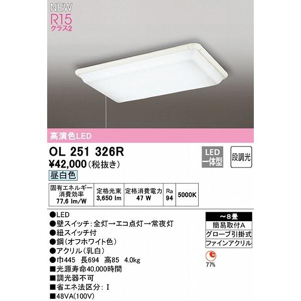 - ライト・照明 > シーリングライト・天井照明 > 新品 シーリングライト 段調光 8畳 LED昼白色 調光器不可 OL251326 ODELIC(オーデリック) シーリングライト 〜8畳 LED(昼白色