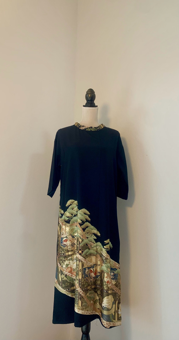 | メーカー | 着物リメイク 黒留袖 ロングワンピース 作家物 グリーン 着物リメイク |